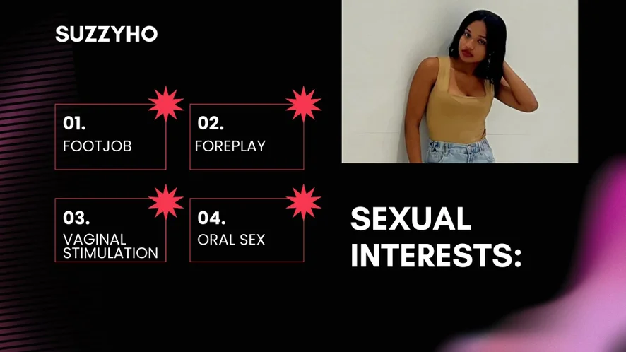 Ahegao, Blowjob, Kameltå, Skittensnakk, Handjob, Sexleketøy, Spanking, Stripping, Upskirt, Blotting, Toppløs, Oljeshow, Deepthroat, Dildo eller vibrator, Fingring, Onani, Doggy style, Fotfetish, Footjob, Onaneringsinstruksjon